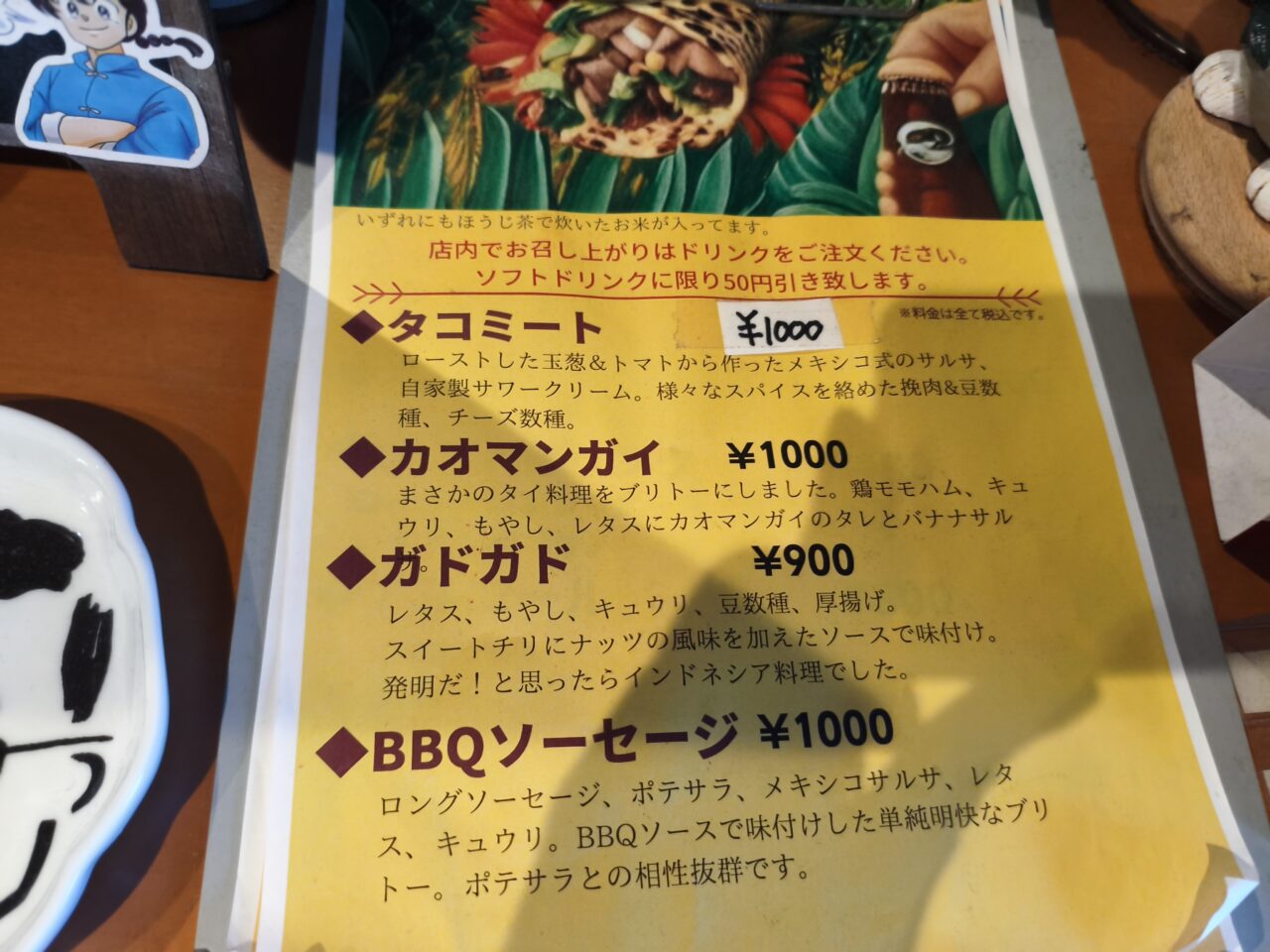ブリトーやタコスといった本場スタイルのメキシコ料理が味わえる貴重なスポットなのですが、あまり人通りが多くない道沿いにある為、まだまだ多くの人に知られていないのが歯がゆくなってしまうほどのオススメのお店です。