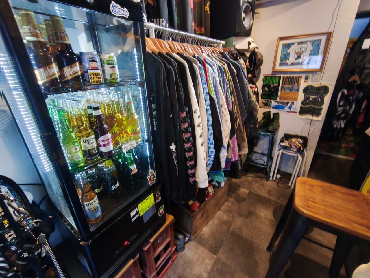 こちらは古着のお店でもあり、店内には所狭しとユニークな洋服が並んでいます。