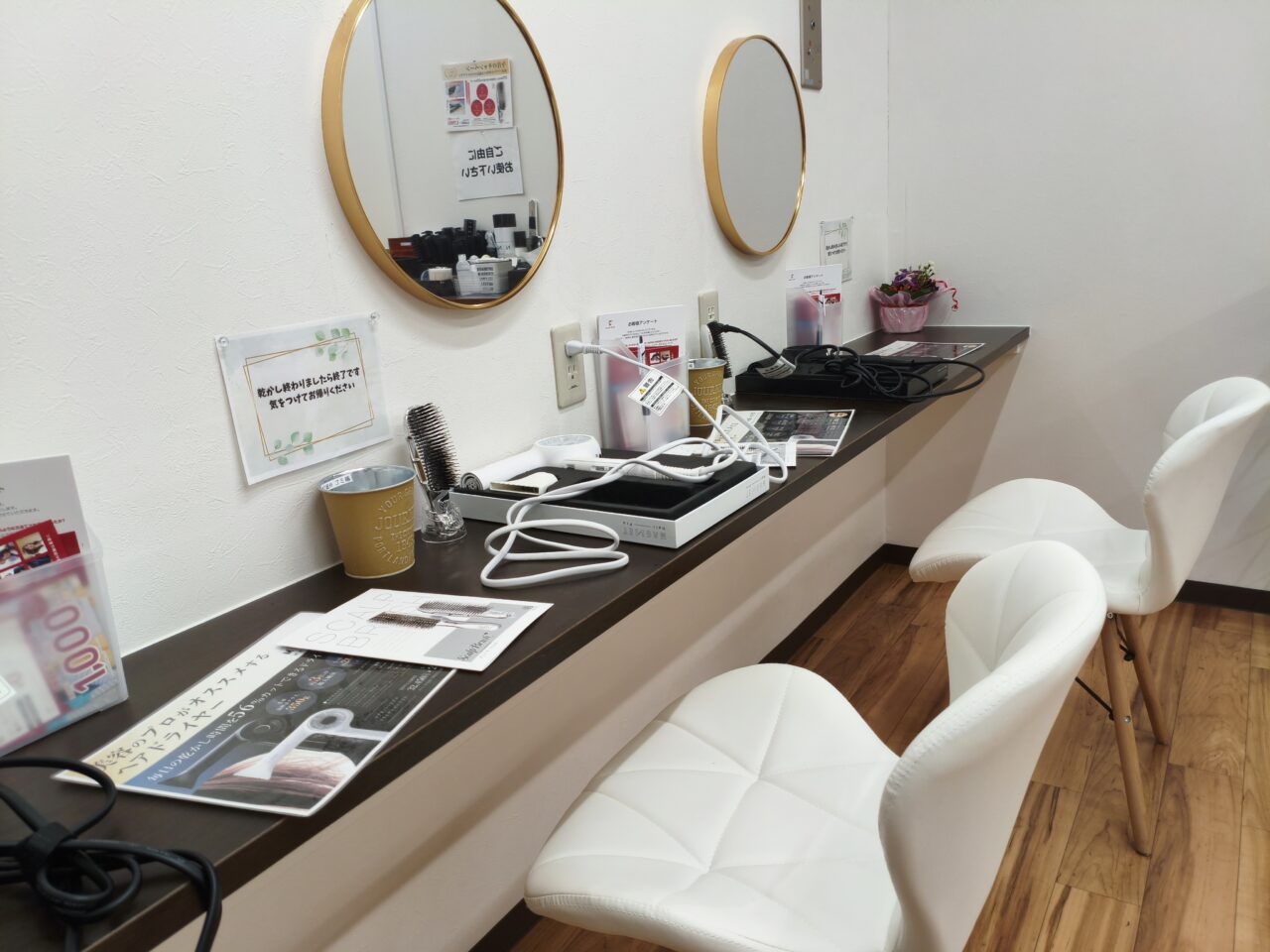 もうひとつ、安さの秘密のひとつとして、髪のドライは自分で行うという点。