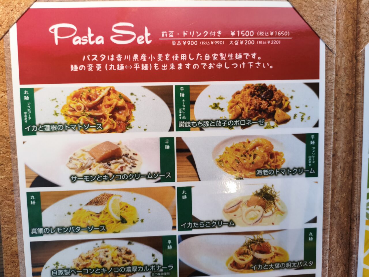 価格は一律でパスタセットが1,650円の前菜+スープ付。