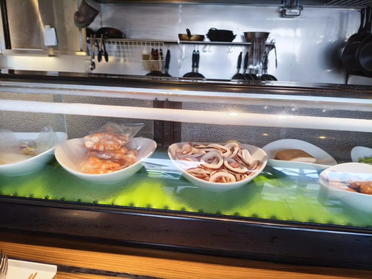 カウンターのショーケースにはお寿司屋さんのように具材が並びます。