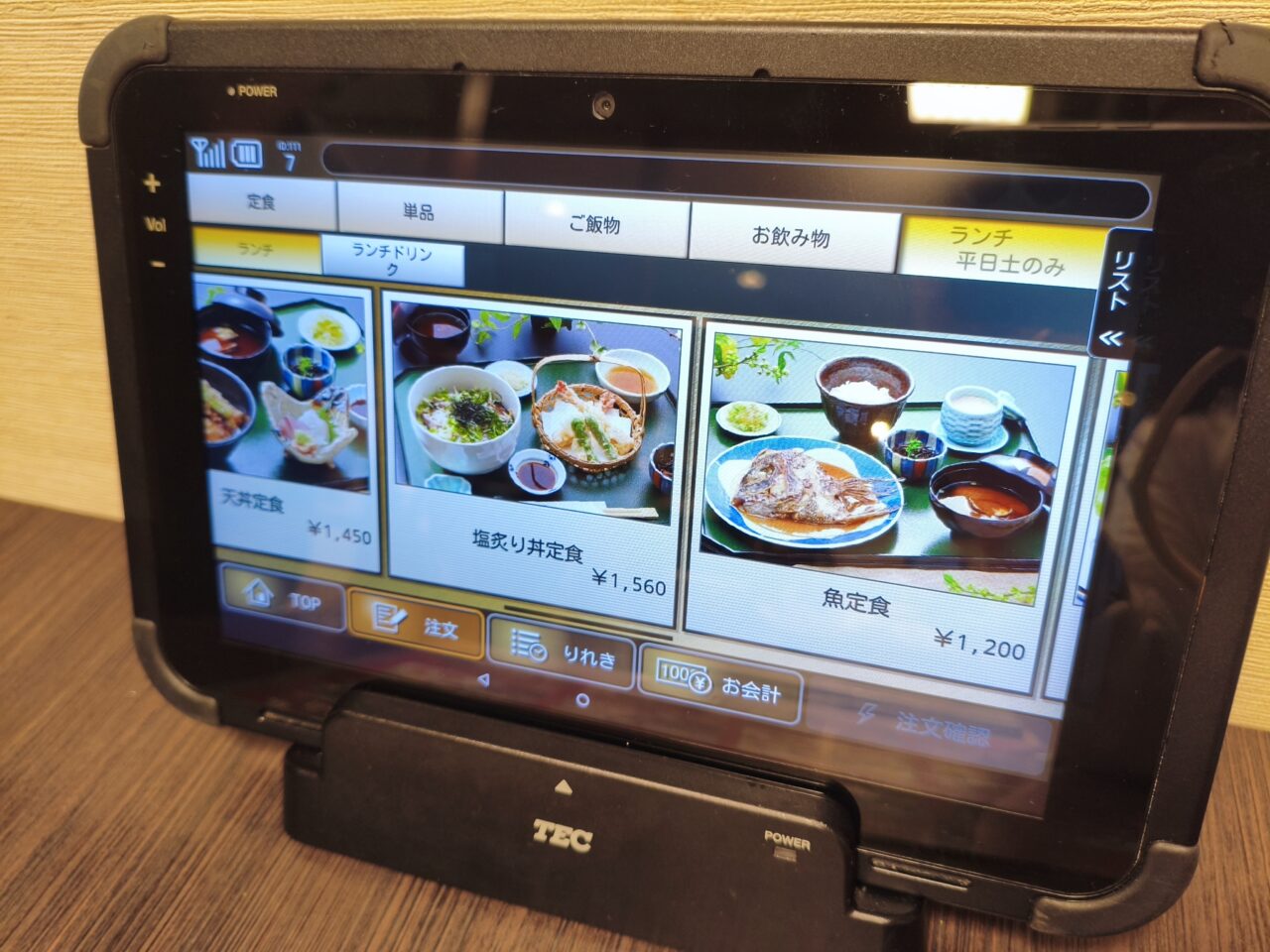 しかし周りを見廻すとタブレットが設置されていない席も多く、この後いらしたご年配の方々はタブレット端末の未設置席に案内され口頭で注文されていました。