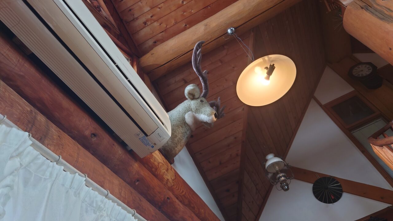 ログハウスと云えば鹿の頭(ぬいぐるみ)もほのぼのしててほっこりします。