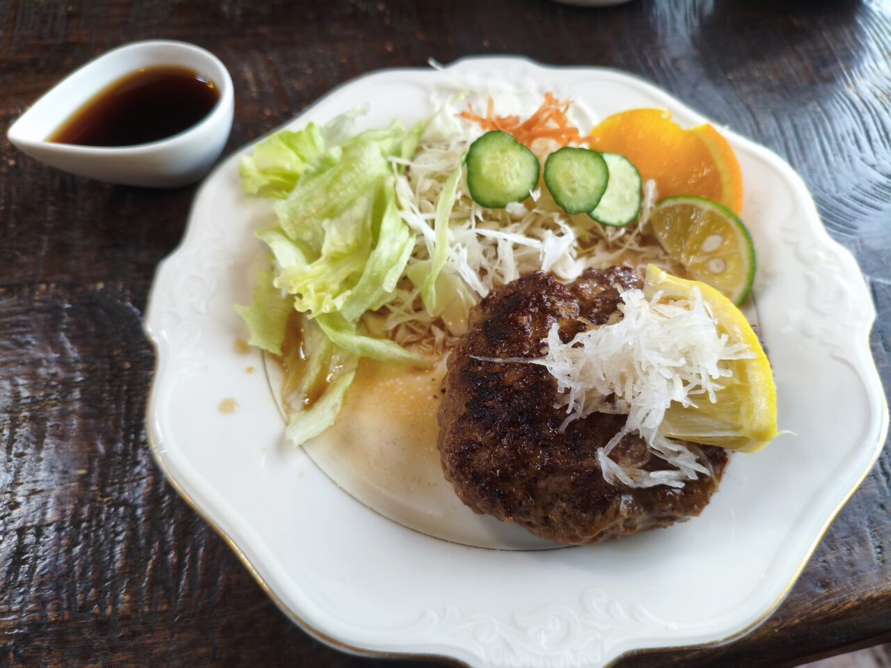 昨今目にするようになった新しい料理よりも、古く懐かしい一品が美味しい…という事もままありますが、コチラの肉厚ハンバーグも昭和の風情と共に昔懐かしい美味しさを味わえる一皿でした。