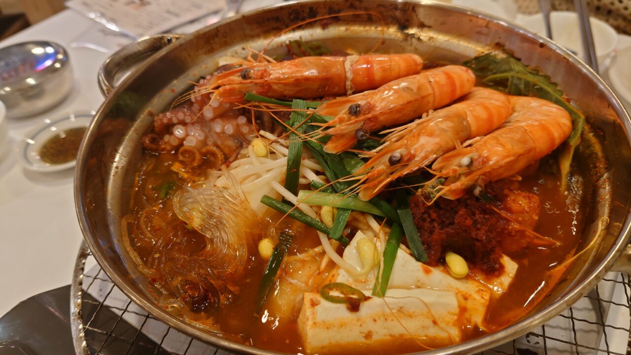 TVのグルメ番組で取り上げられていたこちらの看板料理の渡り蟹「カンジャンケジャン」とエビがたっぷりの海鮮鍋「ナッコプセ」を拝見し、あまりにおいしそうで居ても立っても居られず、ディナーで予約をして行きました!(予約はインスタのDMでもできますが、電話予約の方がおすすめです)