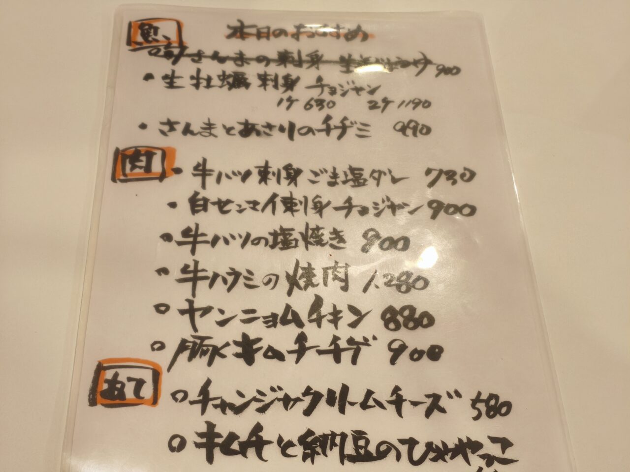 市場近くの立地を活かし、季節の生牡蠣を刺身や韓国風味付け(キムチ和えなど)で提供。入荷状況やメニュー内容が日毎に変わるため、訪問前にSNSでチェックすると安心です。