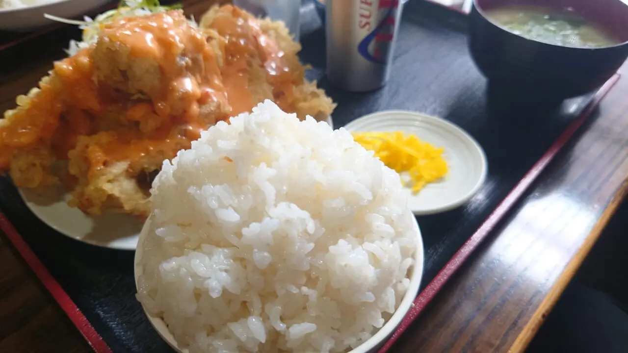後から来た若い男性は、ご飯大を頼んで、店員さんから「本当に多いけど大丈夫ですか?」と確認されてましたが。運ばれてきたのは目を疑う様な漫画盛りを超えたご飯でした!
