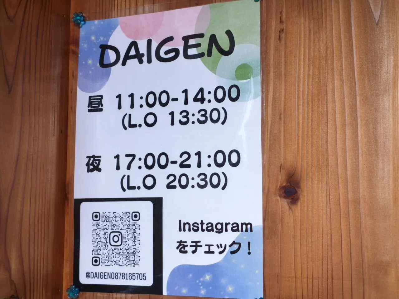 看板は「大元」ですがその他での表記は「DAIGEN」の様です。