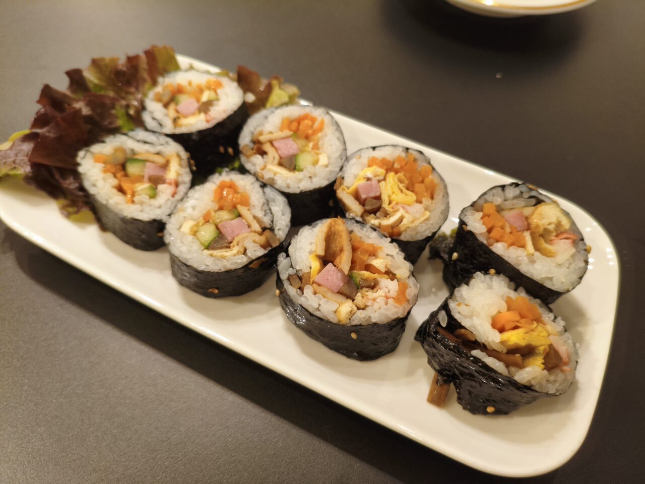 看板メニューの「オリジナルキンパ」(単品900円・スープ、小鉢、キムチのセット1300円)は、プルコギと新鮮な野菜や県産米、国産牛・豚を使用。