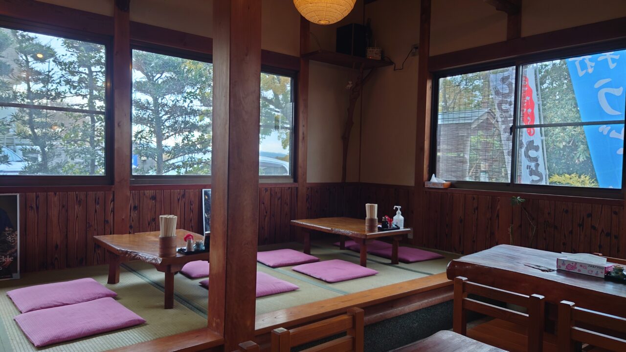 店内は一般店の様な古民家風の佇まいで、長机数脚と座敷席あり。