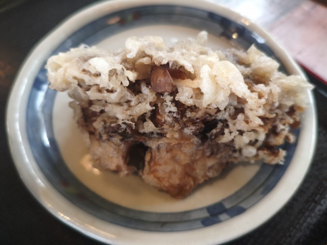 こちらも大胆にカットされた巨大な 舞茸の天ぷら。
