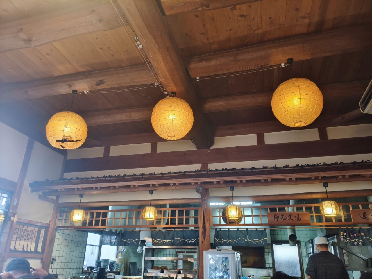 店内も趣向を凝らした作りになっていて、立派な梁や瓦屋根が見応えがあり、提灯が破れた様でさえ趣を感じました。