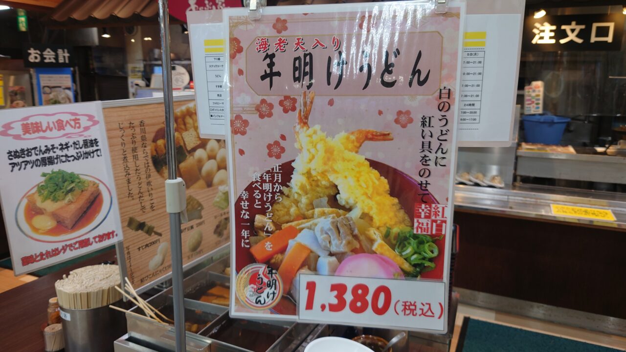お正月期間中、各讃岐うどん店が趣向を凝らした「年明けうどん」を提供しています。
