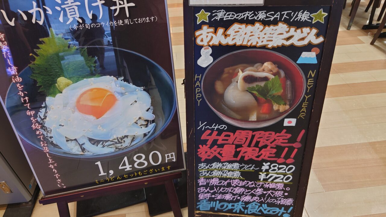 【さぬき市】津田の松原サービスエリアで頂ける讃岐のあん餅雑煮&あん餅雑煮うどん&年明けうどん! その他香川ならではのグルメが大集合!