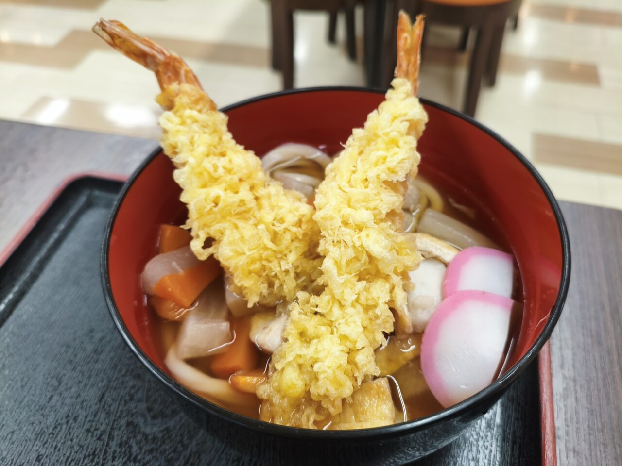 最初、価格がお高めかな…と思いましたが、大きな海老の天ぷらが2尾も乗っていて、しっぽくうどんのように根野菜がどっさり入っているので、お値段以上の食べ応えでした。