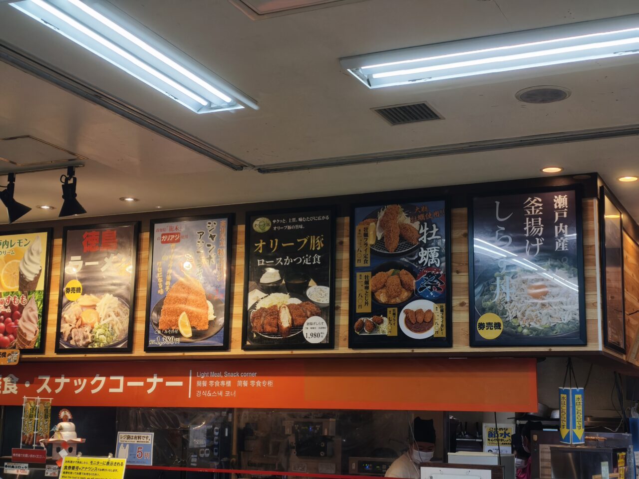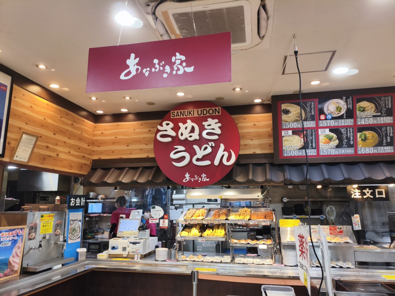 こちらはうどん店とレストランが一緒になっていて、うどんメニューは直接あなぶき家のカウンターで注文、それ以外のメニューは食券を買う形になります。