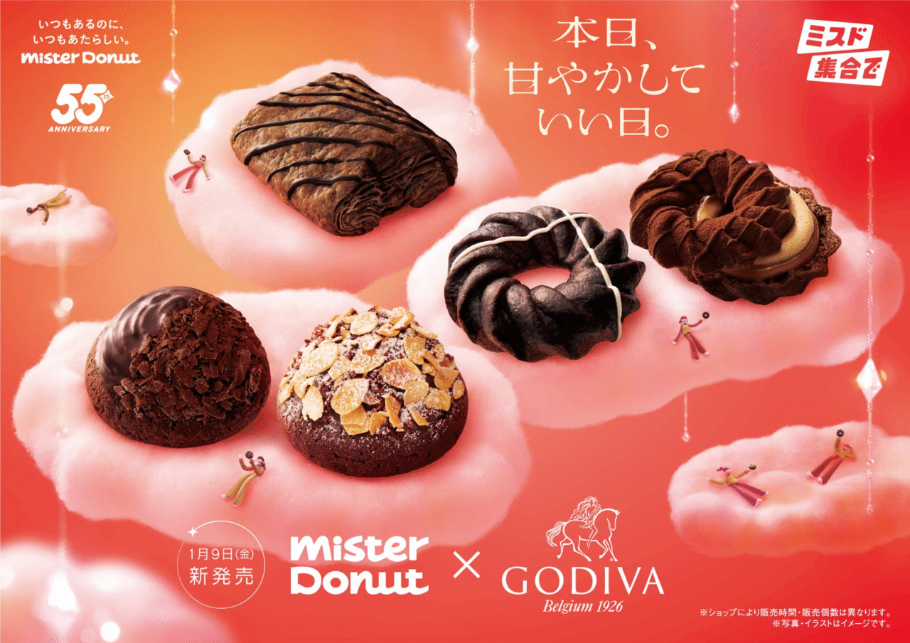 ミスタードーナツは、ベルギーのプレミアムチョコレートブランド「ゴディバ」と共同開発した期間限定商品『Mister Donut×GODIVA』全5種を、2026年1月9日(金)から全国の店舗(一部除く)で発売します!