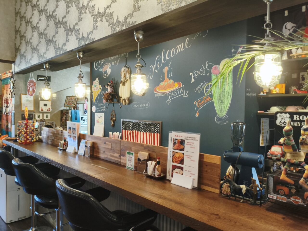 和風な建物にアメリカンな内観、ウリはナポリタンというオリジナリティ溢れるお店ですが、ゴチャゴチャした印象は無く、統一感があるのが不思議です。