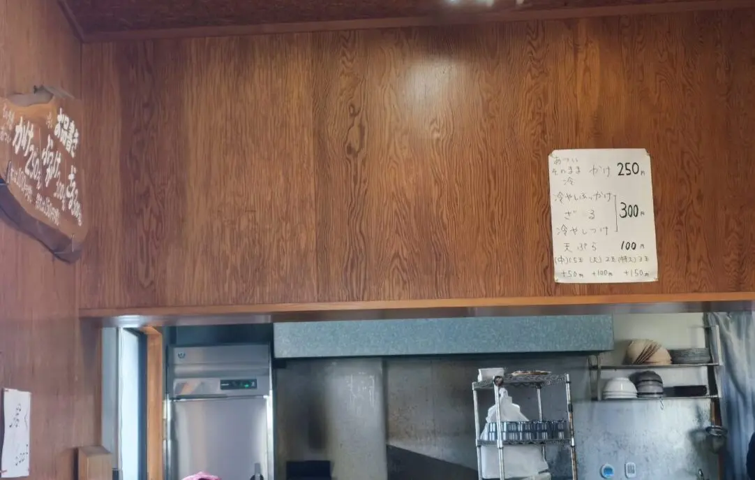 メニューは「かけ」「ぶっかけ」「ざる」「冷やしつけ」「(冬限定)しっぽく」と絞った構成ですが、「かけ」250円と今時凄く低価格のお値段で提供されています!