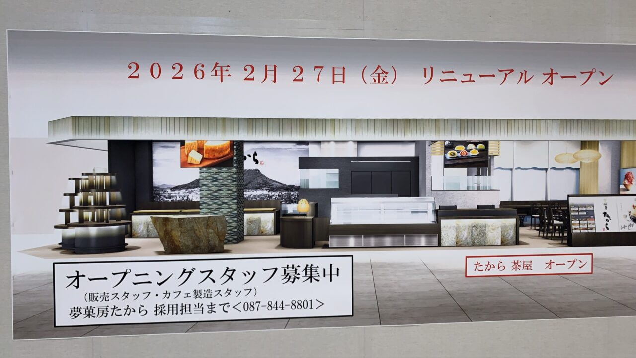 【高松市】あの大人気和菓子店「夢菓房たから」に待望のイートインができるカフェスペースが誕生しますよ!! リニューアルオープン日など