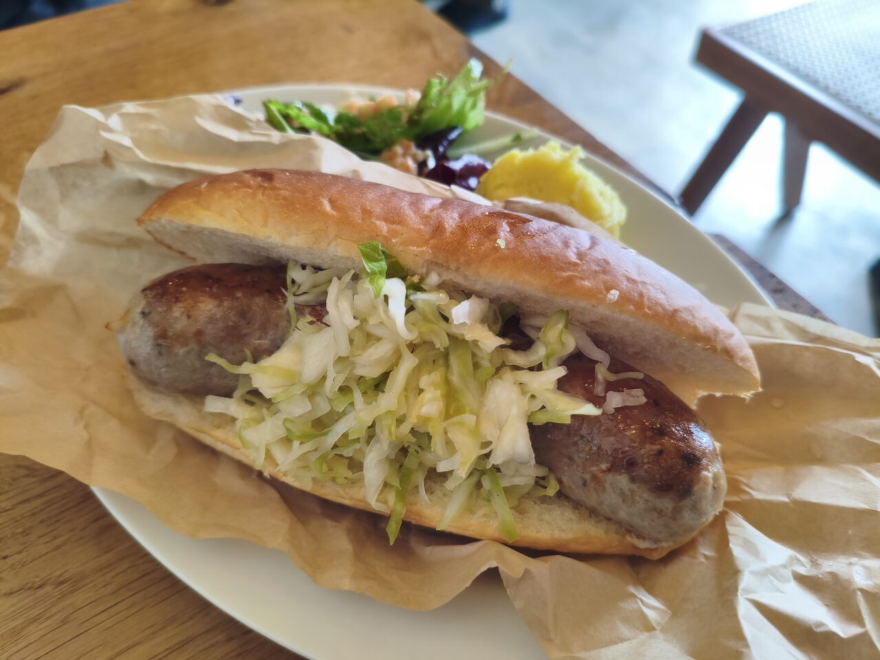 粗びき肉とハーブなどがギッチリ詰まったお肉とジューシーな肉汁、人気のベーカリー「イノウエベーカリー」からのコッペパンのハーモニーがたまりません!