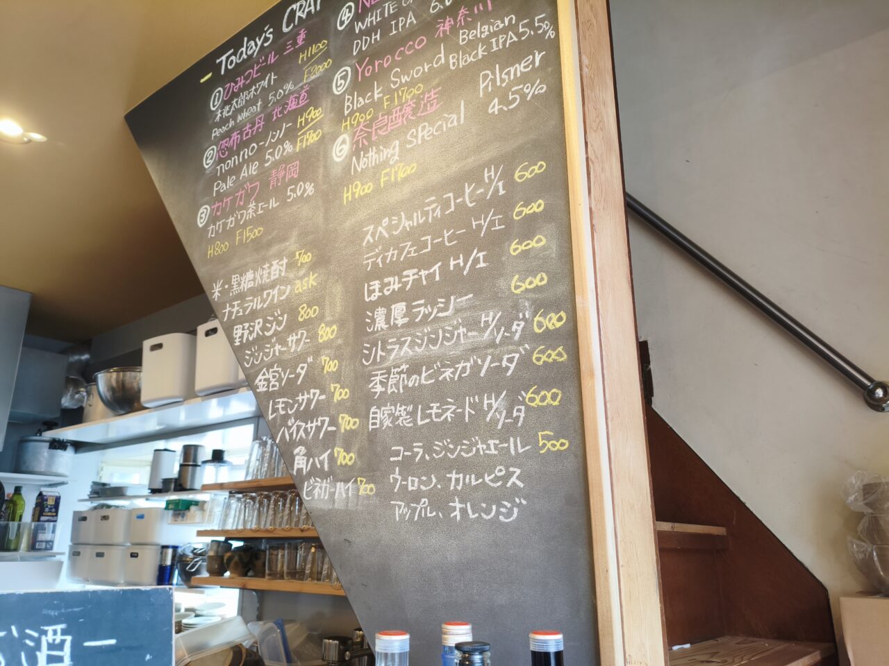 壁にはたくさんのクラフトビールやドリンクのメニュー名があり、圧倒されますね。