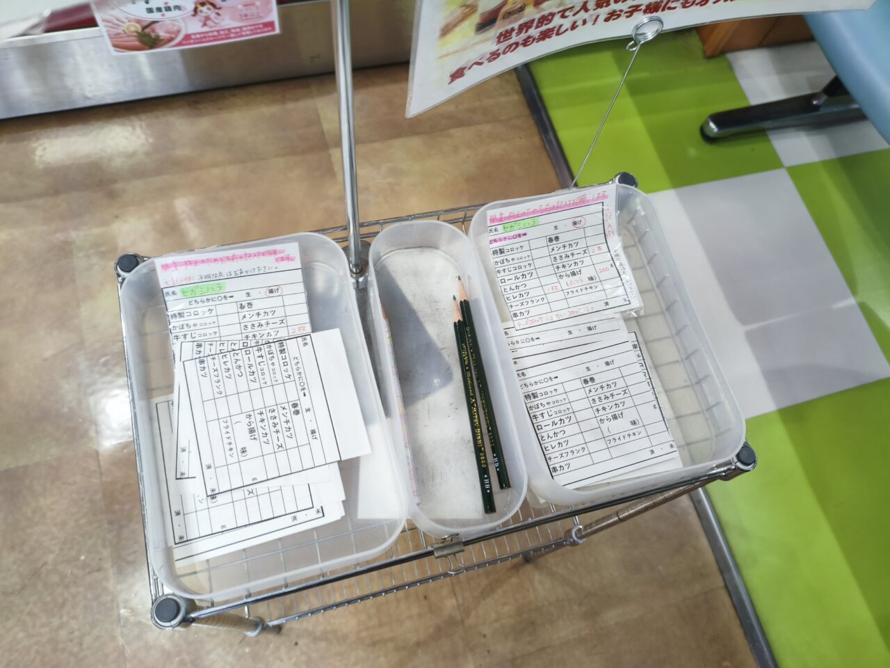 揚げてもらう場合は名前と注文の品を書き込み、店員さんにお渡しします。