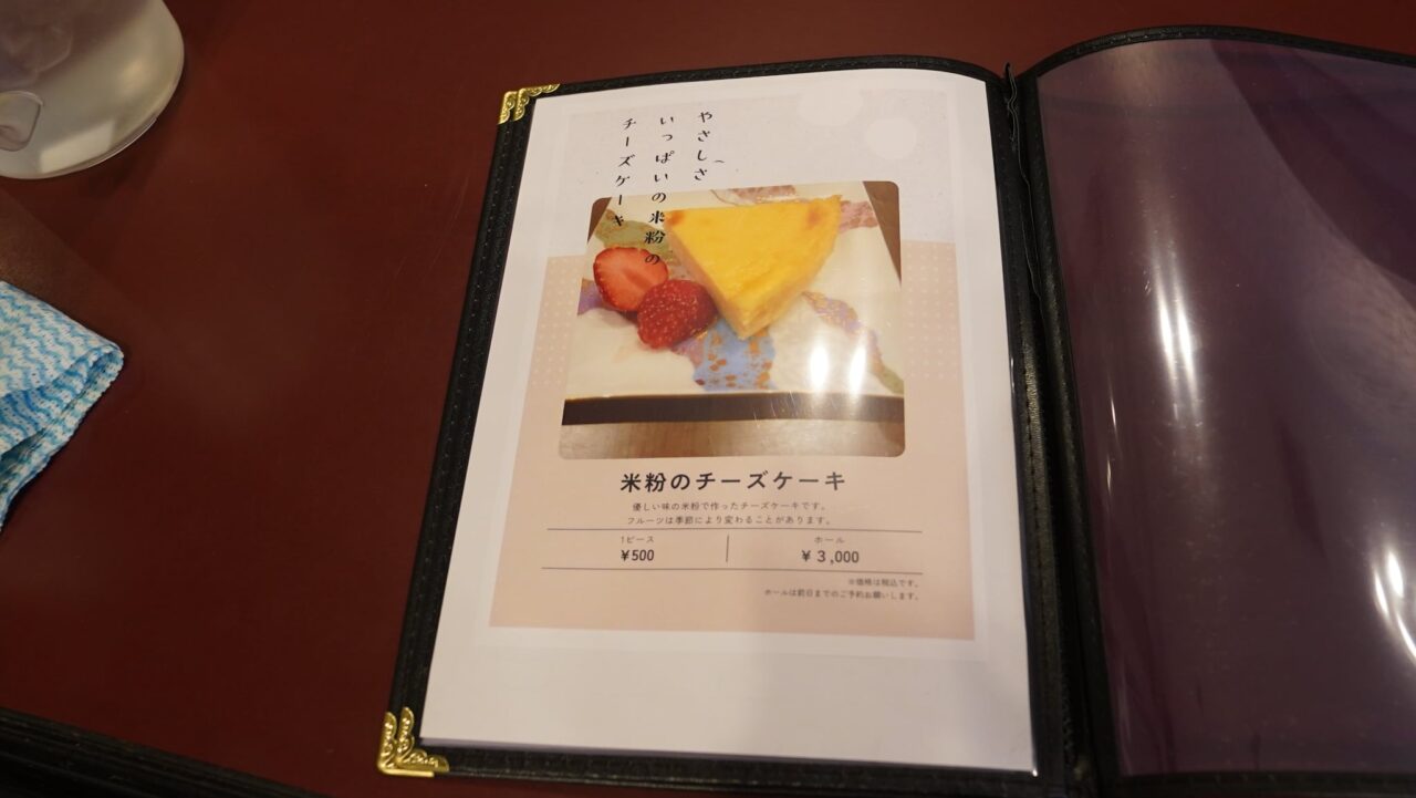米粉のチーズケーキ(500円): しっとりとした食感と優しい甘さが特徴。