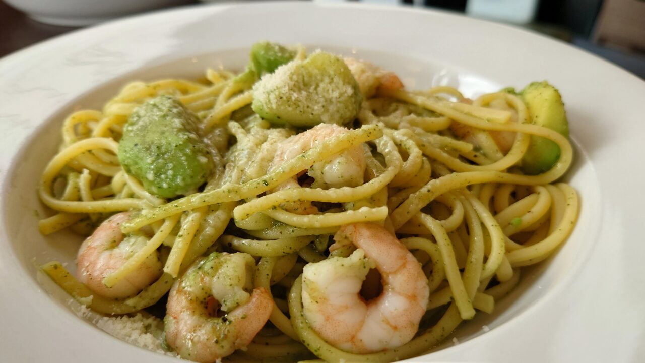 「海老とアボカドのバジルソース生パスタ」(880円)