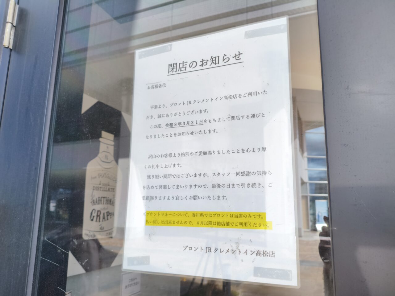 高松駅前のホテル「JRクレメントイン高松」内にあるPRONTO JRクレメントイン高松店が、2026年3月31日をもって閉店することが分かりました。