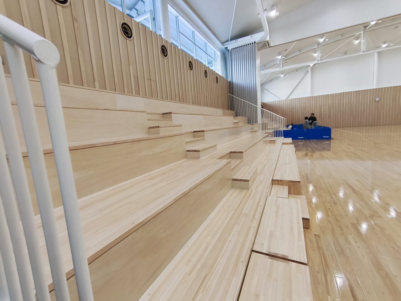 こちらは武道施設。香川県産ヒノキ材を使用したフロア。
