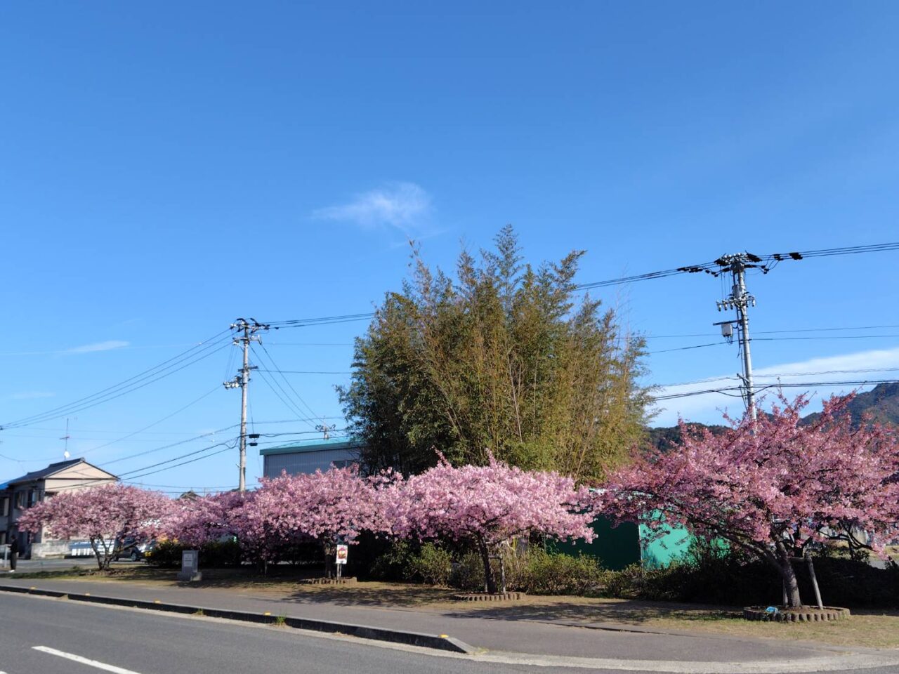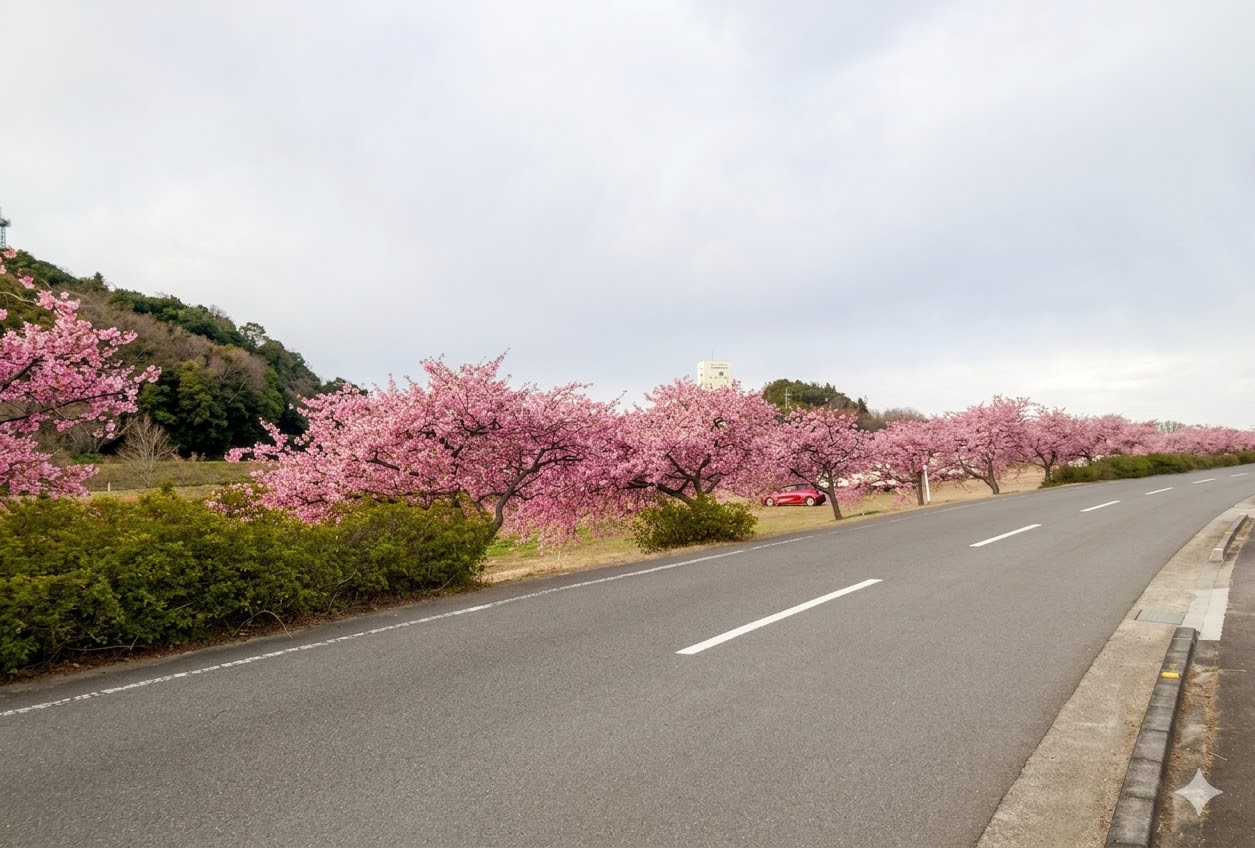 植えられているのは早咲きの品種として知られる河津桜で、一般的な桜として知られる ソメイヨシノ よりも早く咲くのが特徴。例年、2月下旬から3月上旬にかけて見頃を迎えます。