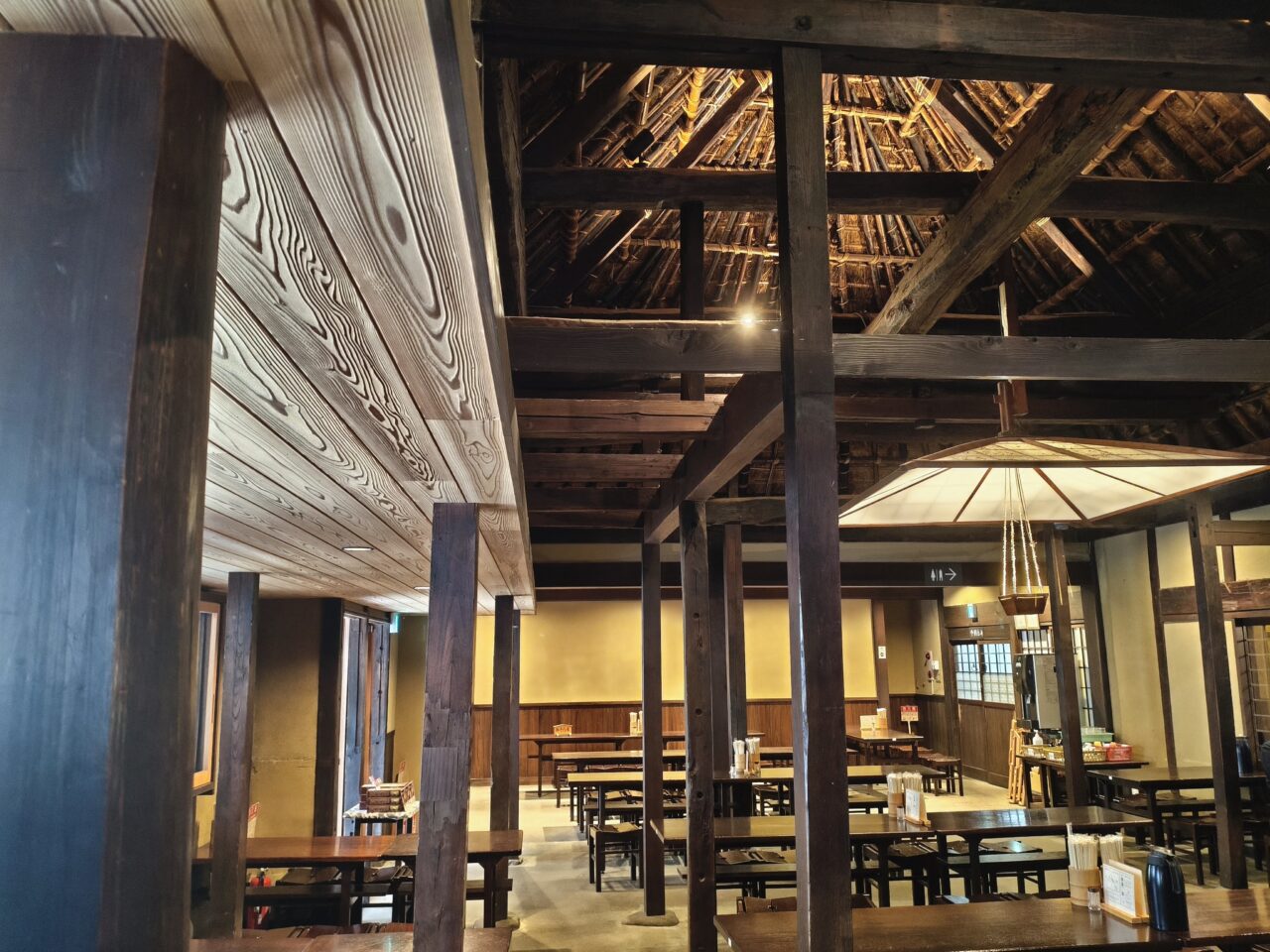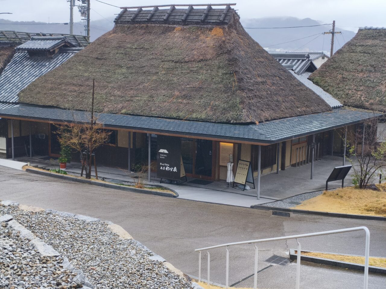 店舗は江戸時代末期の農家を移築した茅葺き屋根の古民家で、まるで昔の日本にタイムスリップしたかのような空間です。