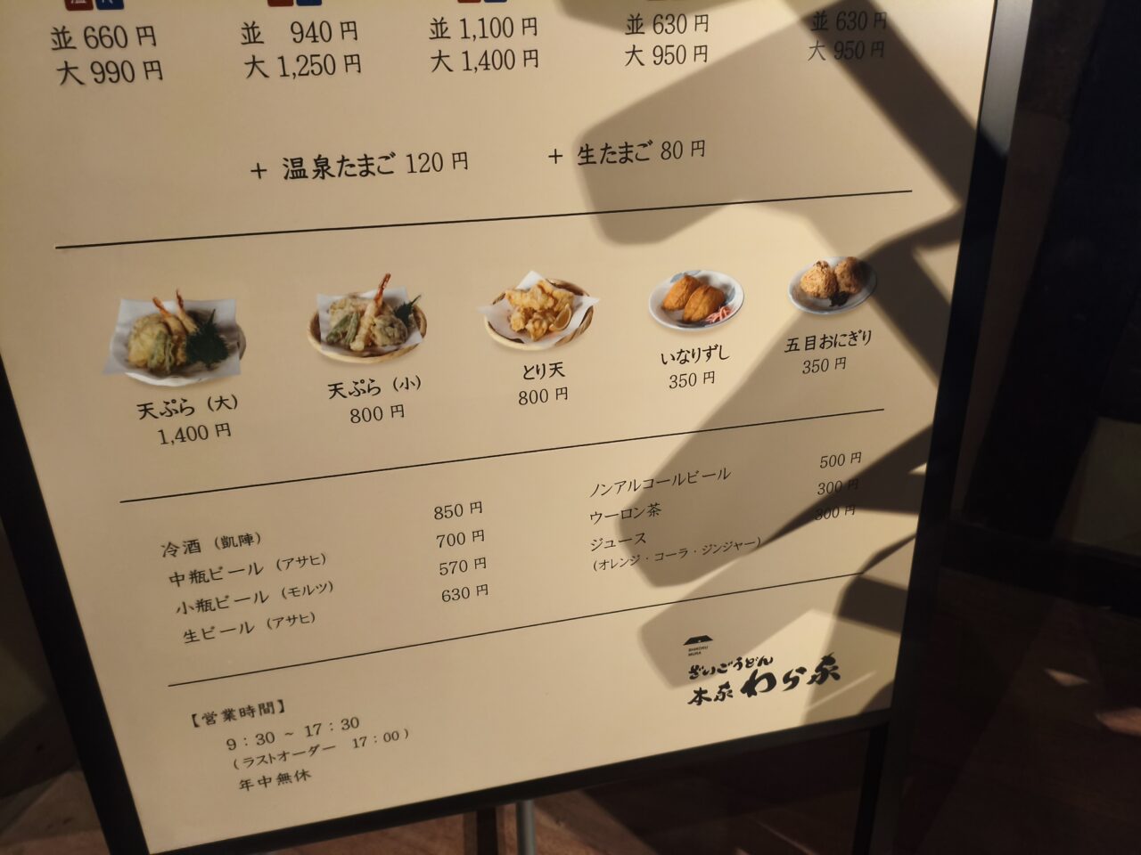 メニューは多くないものの、このお店の名物であるたらいに入ったうどんがあります。