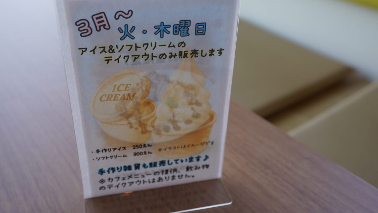 ・火・木曜:ソフトクリーム(300円)&手作りアイス(250円)のテイクアウト販売のみ