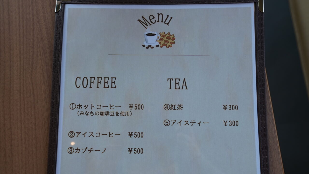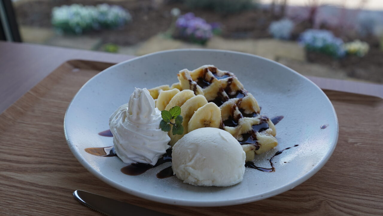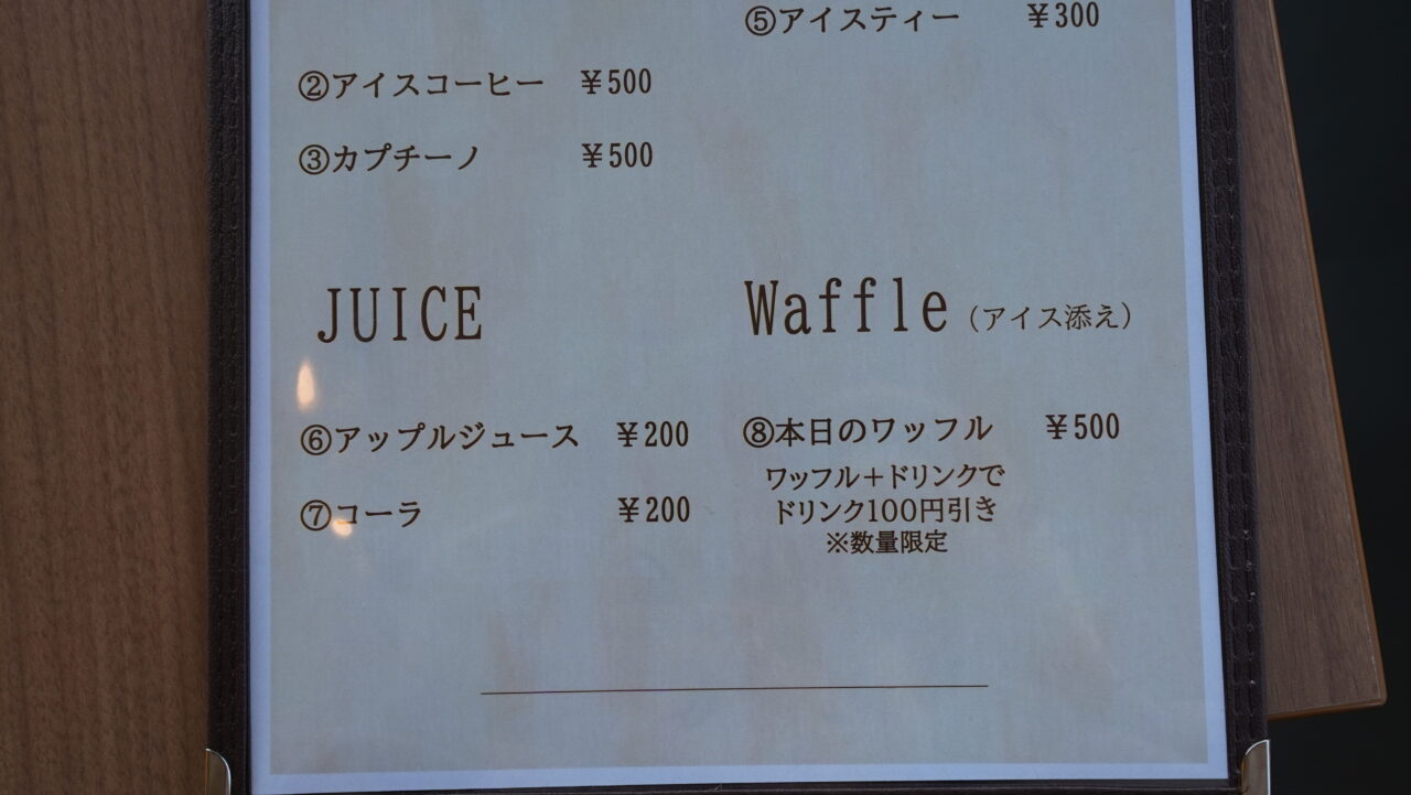 看板メニューのひとつが、「Waffle(アイス添え)」(500円)。