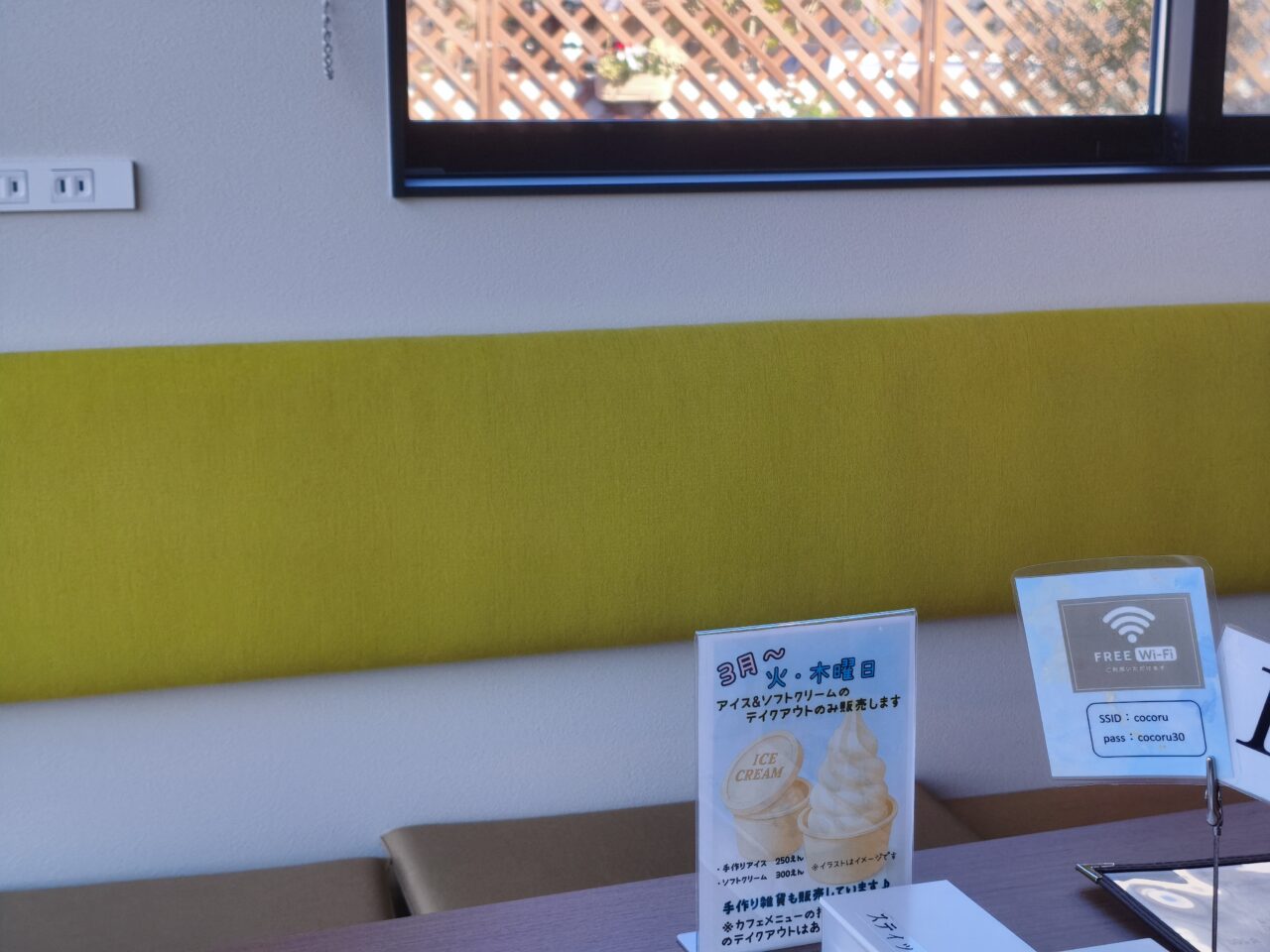 - 水・金曜の午前10時半~午後2時半※火・木曜はソフト&アイスのテイクアウト販売のみ営業