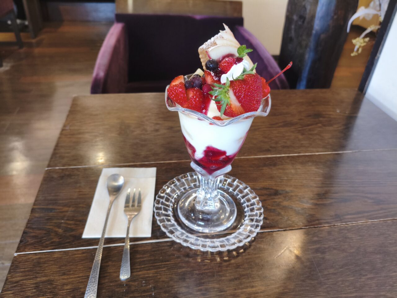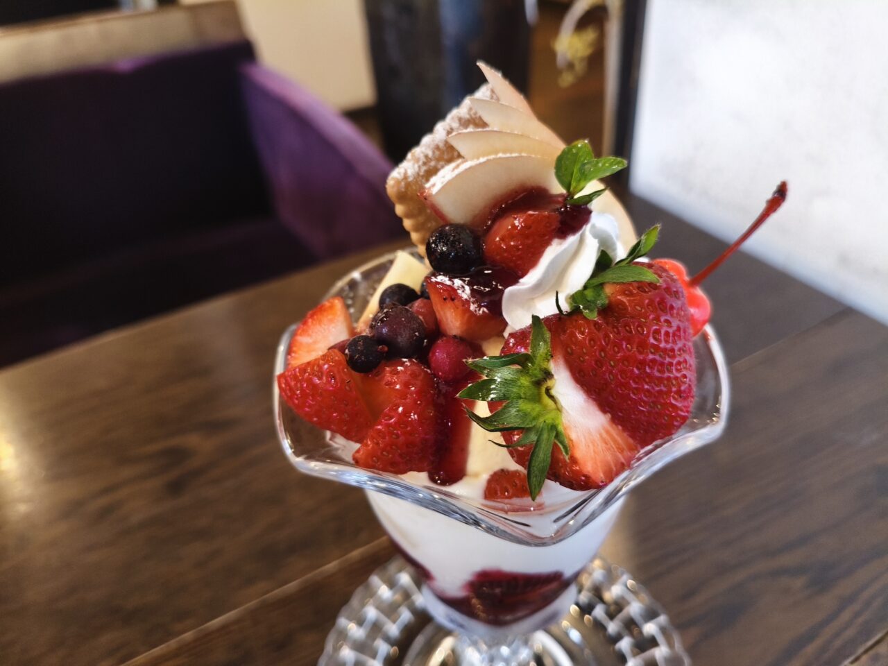 様々なフルーツがふんだんに盛り付けられたチョコレートパフェと迷いましたが、この日はさっぱりした味わいのものが食べたい気分だったので、大満足でした。