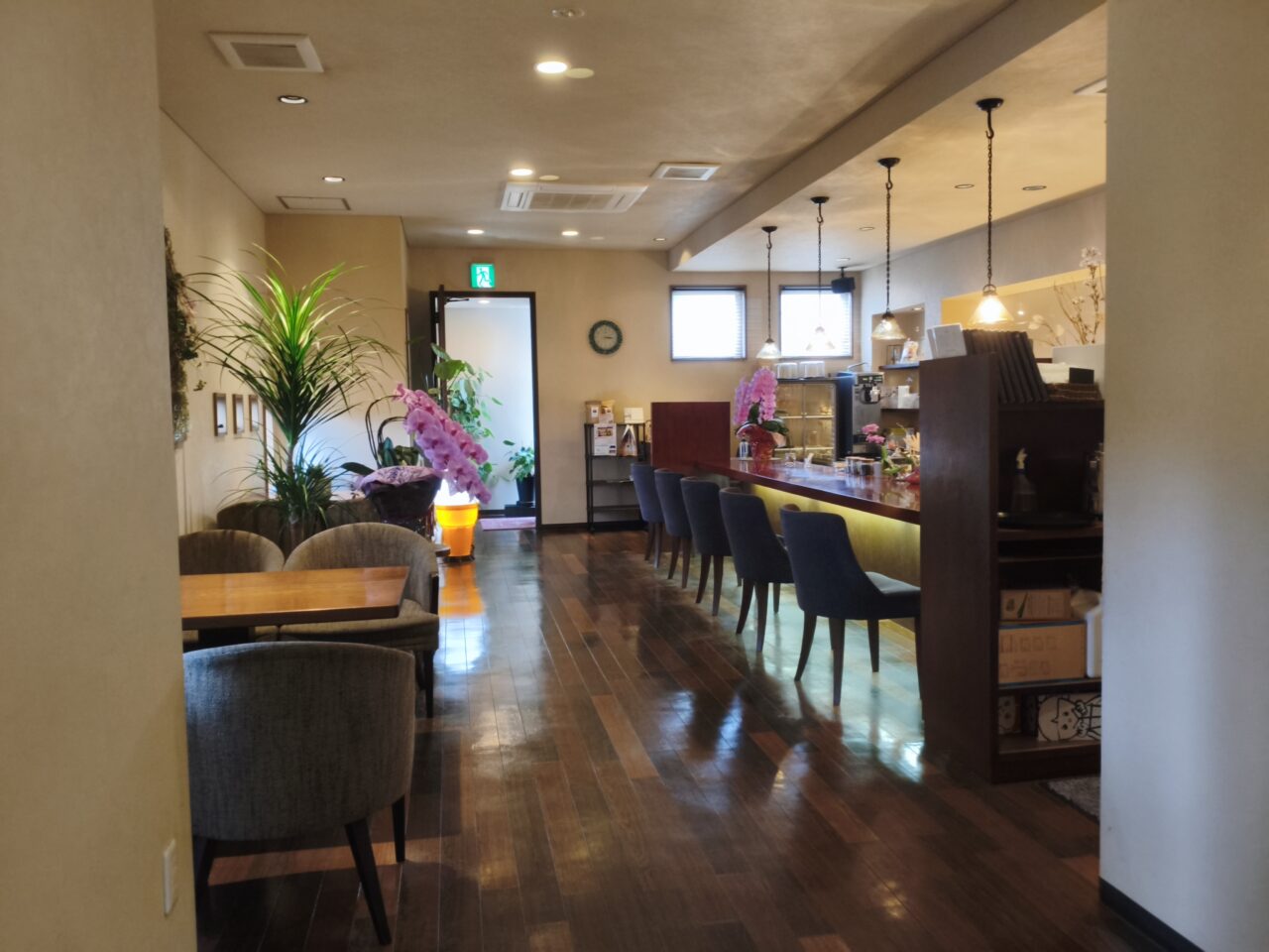 広々とした空間に、ゆったりと配置されたテーブルやカウンター席があり、ひとりでもグループでも過ごしやすいのが特徴です。