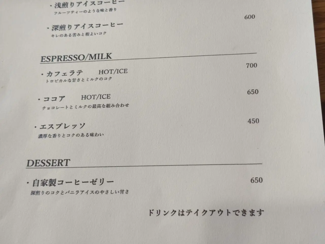 オープンしたての現在は特に焼き菓子などはなかったようですが、「自家製コーヒーゼリー」を頂きました!