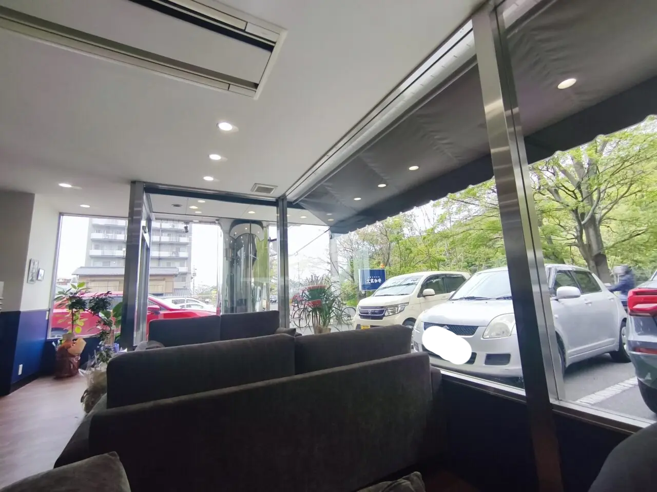 そして大きな窓、フカフカのクッション席。