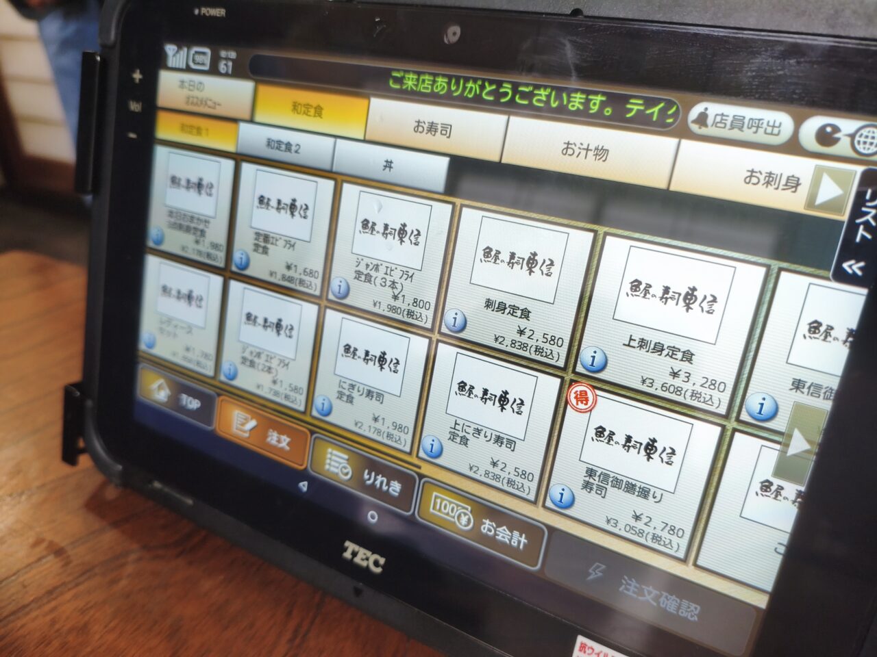 タッチパネルが導入されていますが、使い慣れない人は店員さんが直接注文を受けてくれるので安心です。