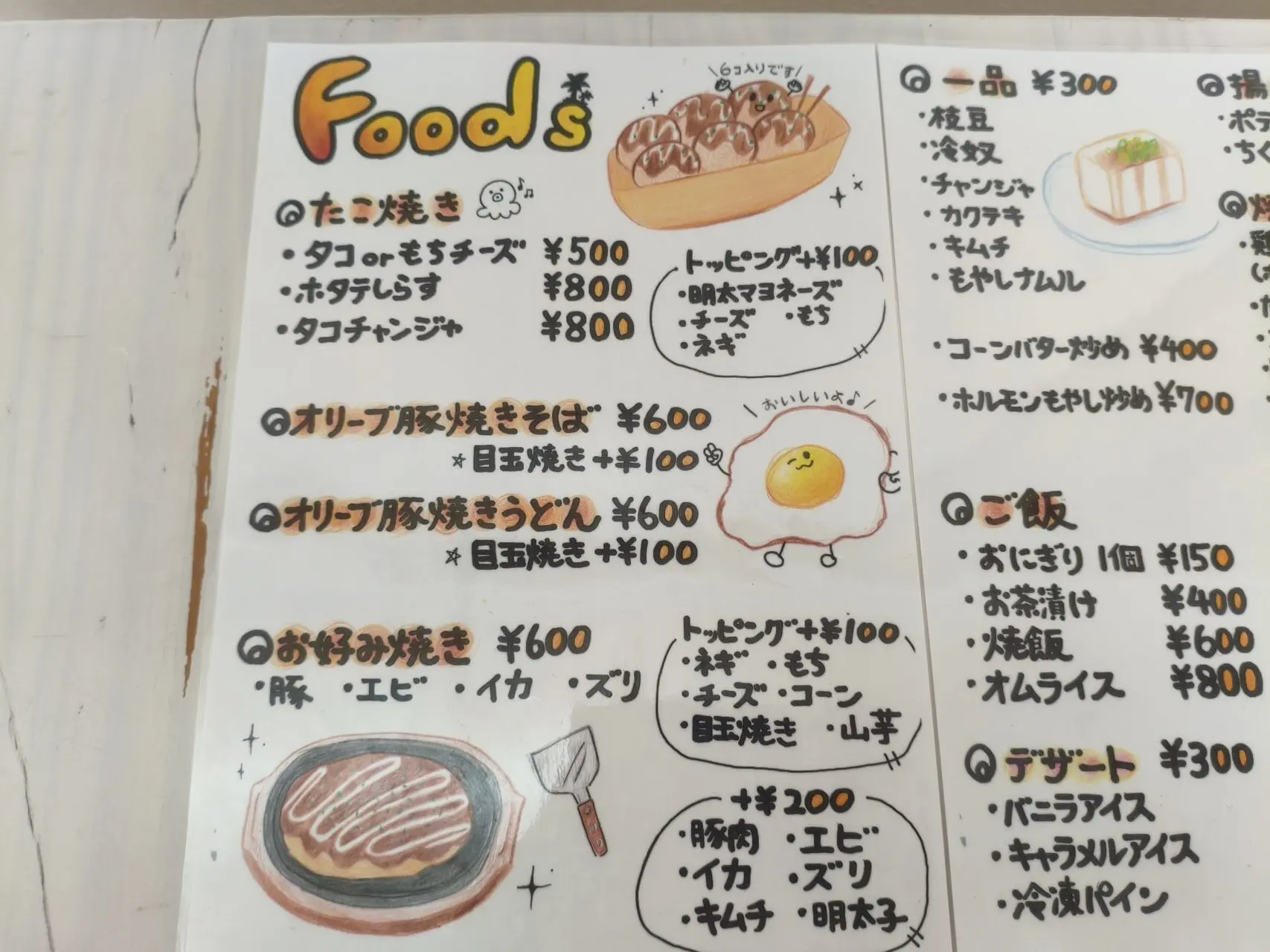 これまでたこ焼きやお弁当で親しまれてきた同店ですが、新店舗では待望の店内飲食がスタート。